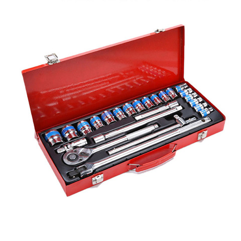 Multi-fonction 24PCS 1/2 "DR Auto Repair Red Mental Box Torx Socket Tool Set Box Ratchet Wrench Herramientas Kit Socket Set